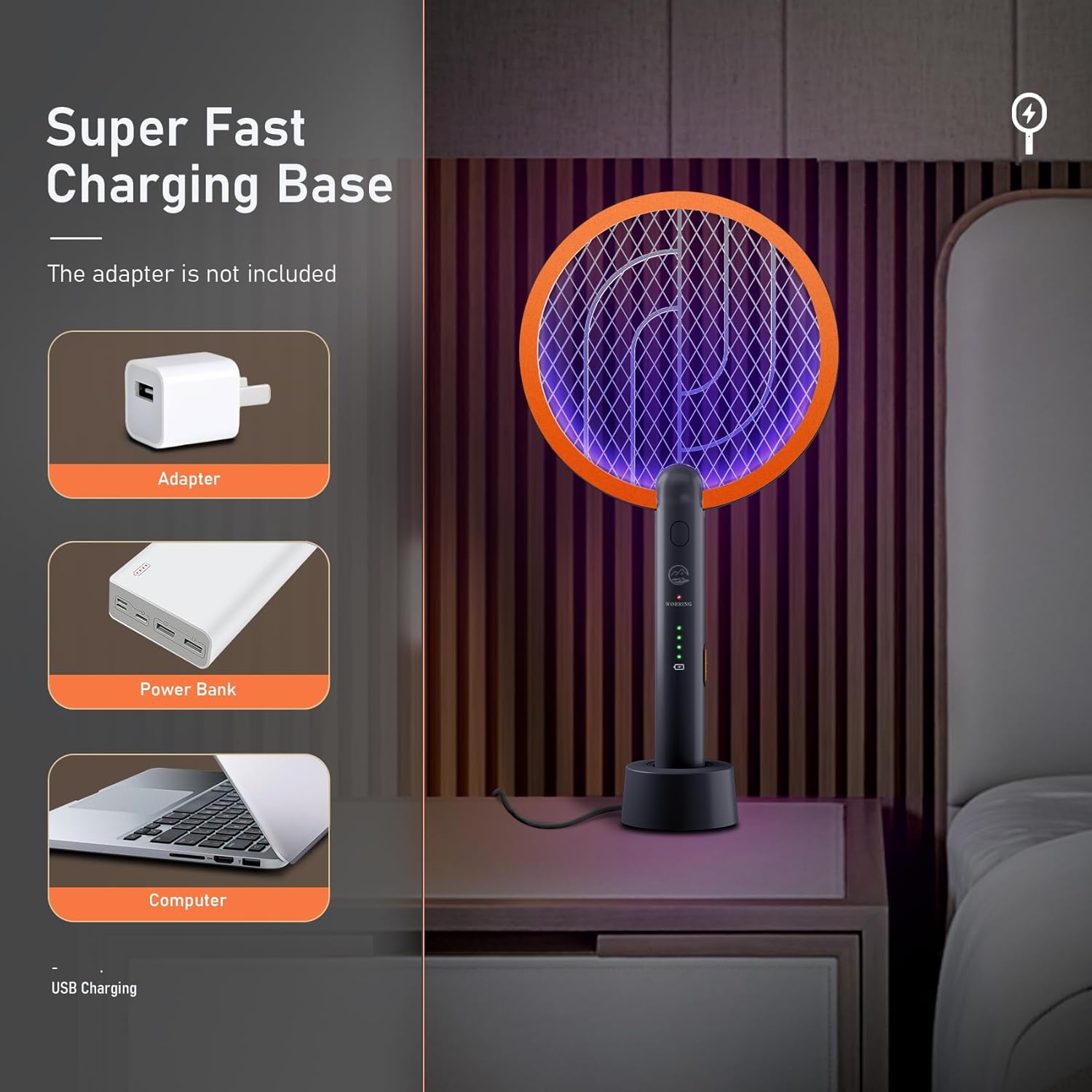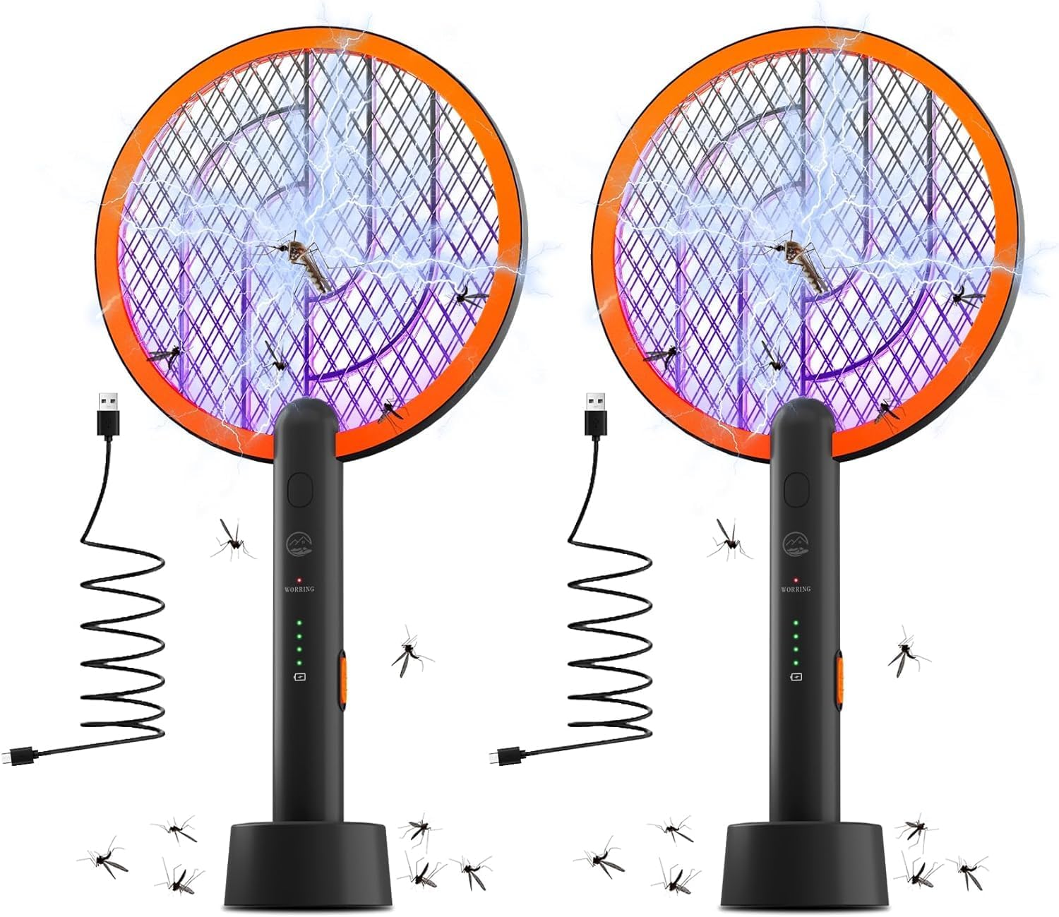 1800mah Rechargeable Battery Lasts Longer - Different from other ordinary mosquito swatters, this electric fly swatter comes with a built-in USB charger base and quickly & efficiently charges. Compared with disposable batteries and low-capacity batteries, have longer battery life and don't cause waste and pollution.