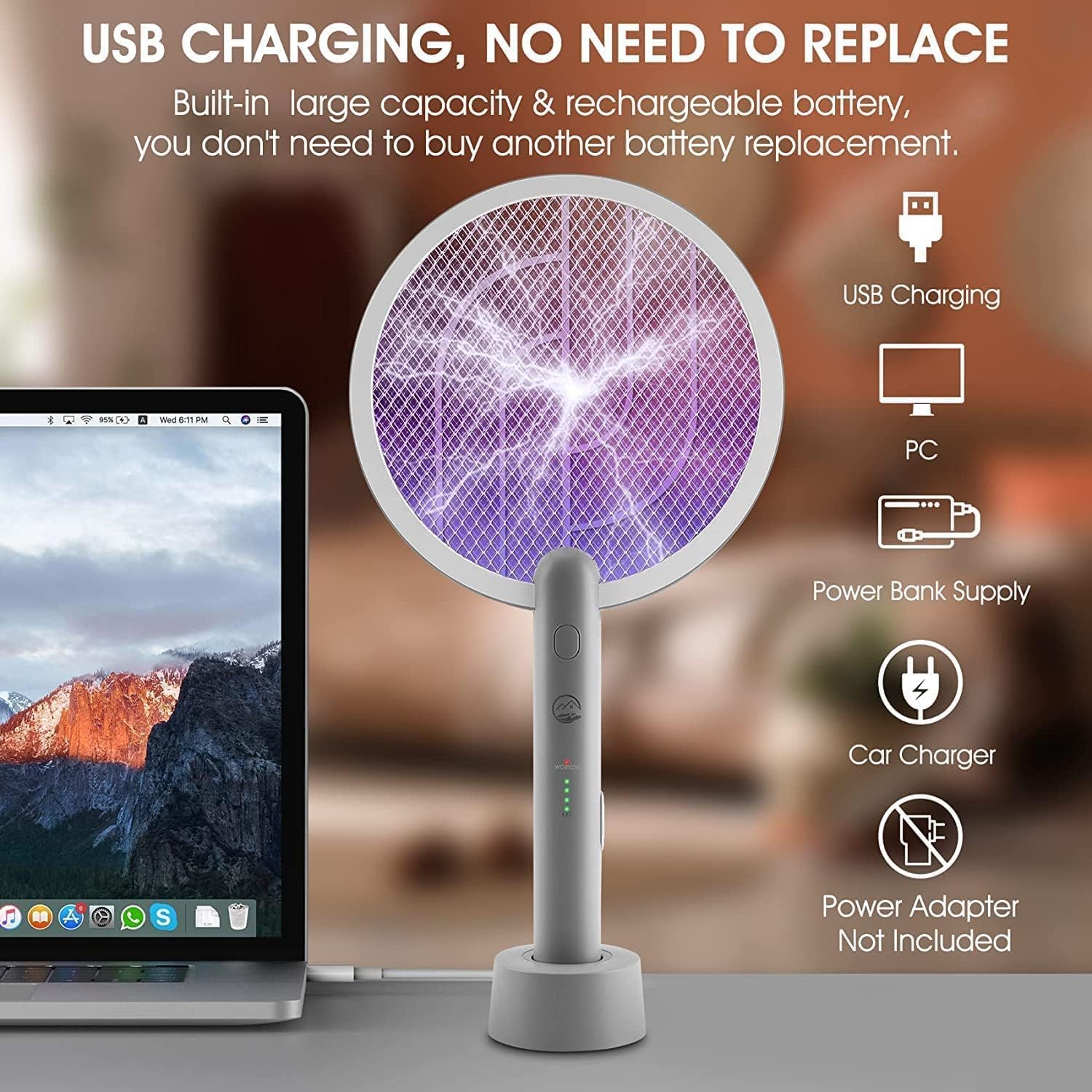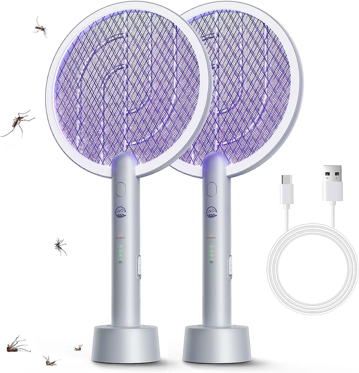 【Convenient & Longer Lifetime】 - Different from other ordinary mosquito swatters, this electric fly swatter comes with a built-in USB charger base and quickly & efficiently charging. Compared with the disposable battery, it has longer battery life and doesn't cause waste and pollution.