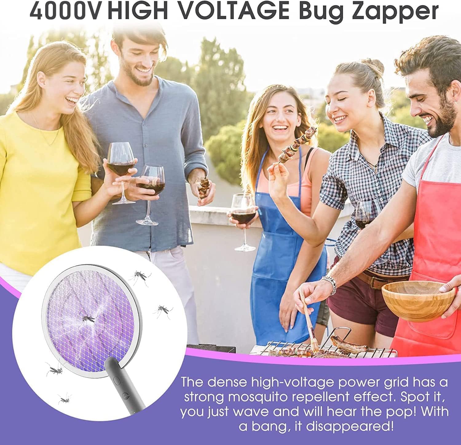 【Safety 4000V Mosquito Killer】 - Adopted 4000V High Volts grid, our powerful bug zapper can kill mosquitoes instantly. Besides, we design the 3 safe layer mesh to separate the high voltage grid. It includes the nickel-plated stainless steel outer mesh and aluminum inner mesh which is no leakage of Electricity and anti-deformation. It is friendly to children and the environment.