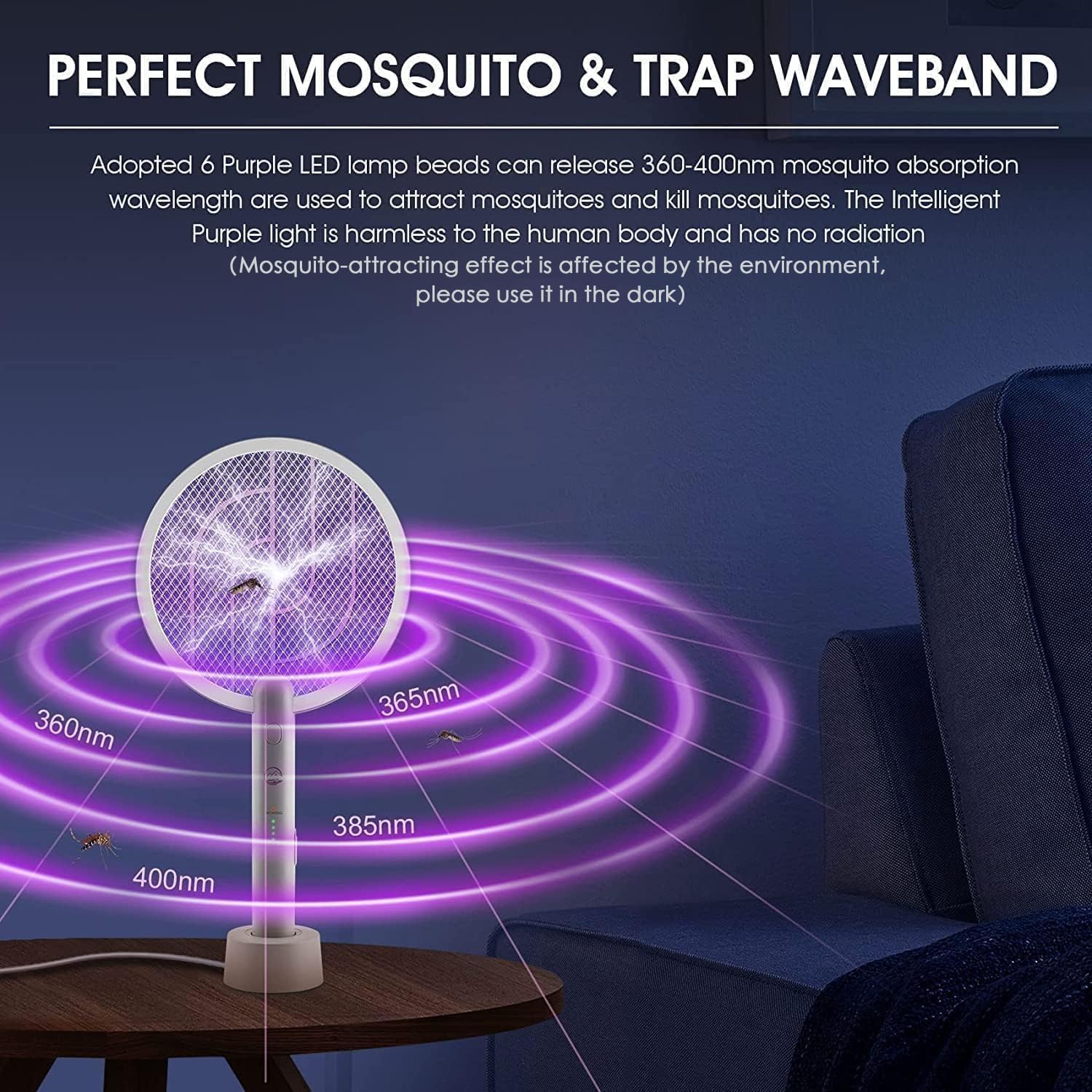 【Effective Purple Mosquito Killer Lamp】- We made purple LED lamp beads that can release 395mm mosquito habit wavelength to attract mosquitoes. You just put it on the base and turn it on. According to the mosquito's phototaxis habits, it is effective to attract mosquitoes, and the mosquitoes will swarm to the electric shock net in a suicidal way.