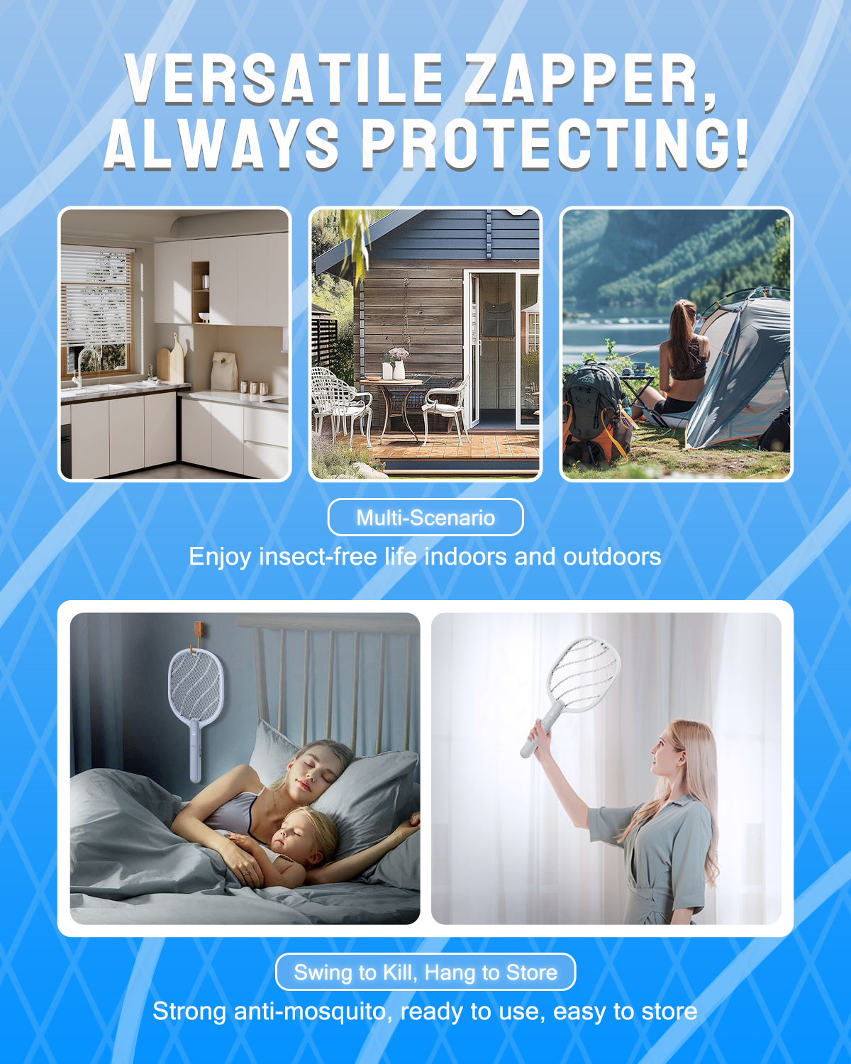 【Triple-Layer Safety Mesh Protection】Designed with three-layer protective mesh, the fly swatter prioritizes safety during operation. Protective grids work together to prevent accidental contact.